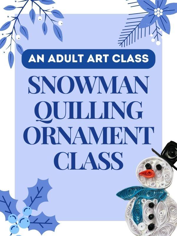 This class is taught by Robyn Iarrobino of Blue Anchor Studio. She will guide you through the process of quilling, a type of ornamental craftwork involving the shaping of paper. All materials will be provided. By the end of this class, you will go home having learned a new skill and in the company of an adorable paper snowman.